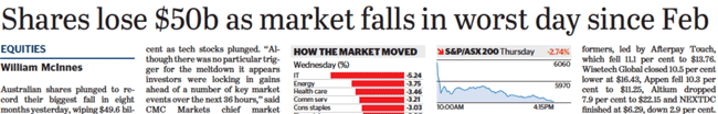 Since October 2018 the Australian stock market has had what the market pundits like to call “a correction”. At the time of writing, the main Australian Stockmarket index — the S&P/ASX 200 — is down almost 10%.